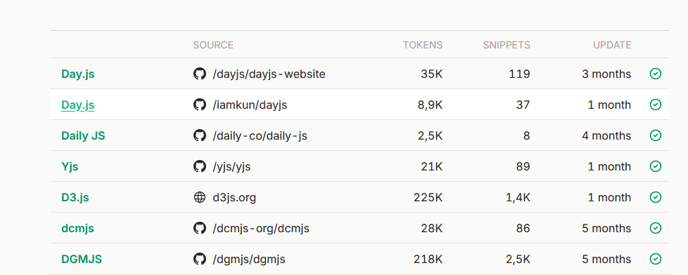 - Supports framework-specific docs (Vue, React, Next.js, Day.js, etc.).